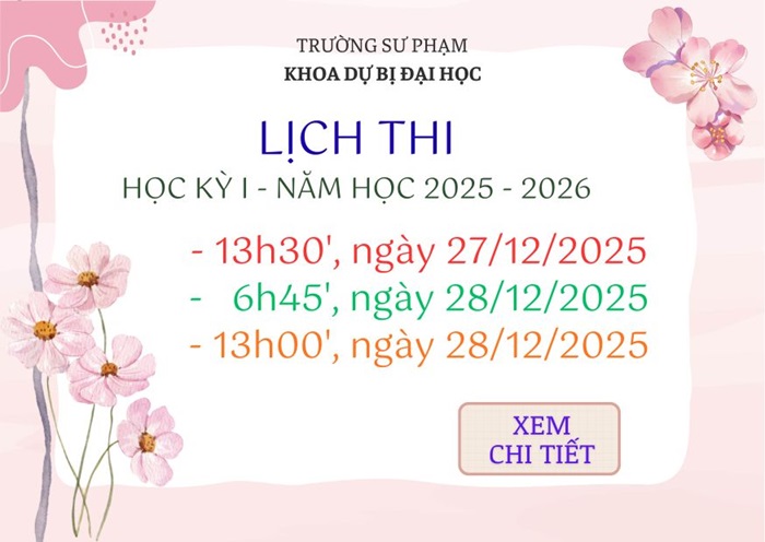 Lịch thi học kỳ I, năm học 2025 - 2026